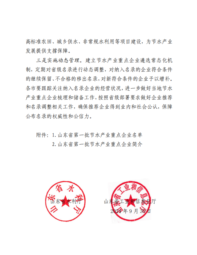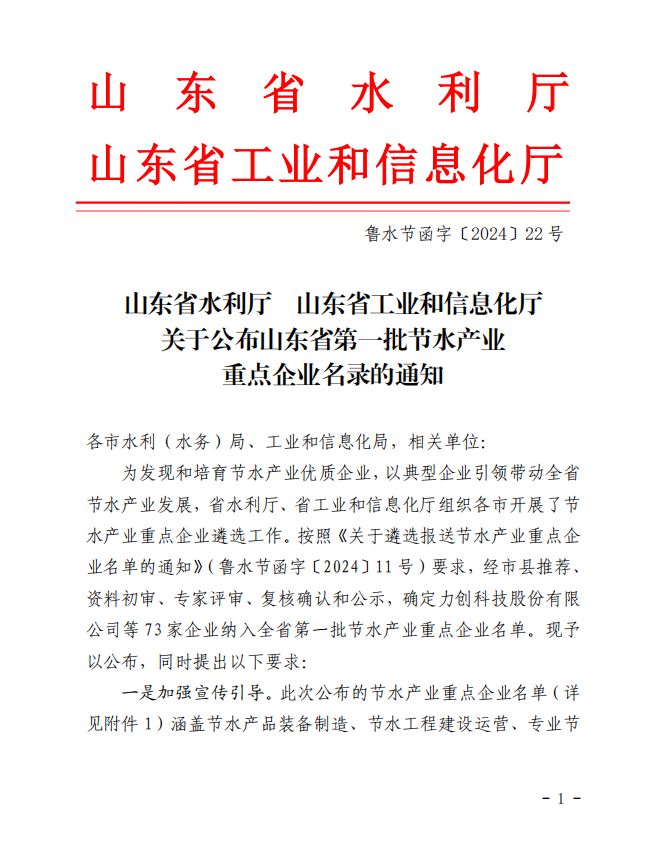 元器件等研發(fā)、生產(chǎn)和銷售,成功入選山東省水利廳、工信廳聯(lián)合確定的“山東省第一批節(jié)水產(chǎn)業(yè)重點企業(yè)名錄”。